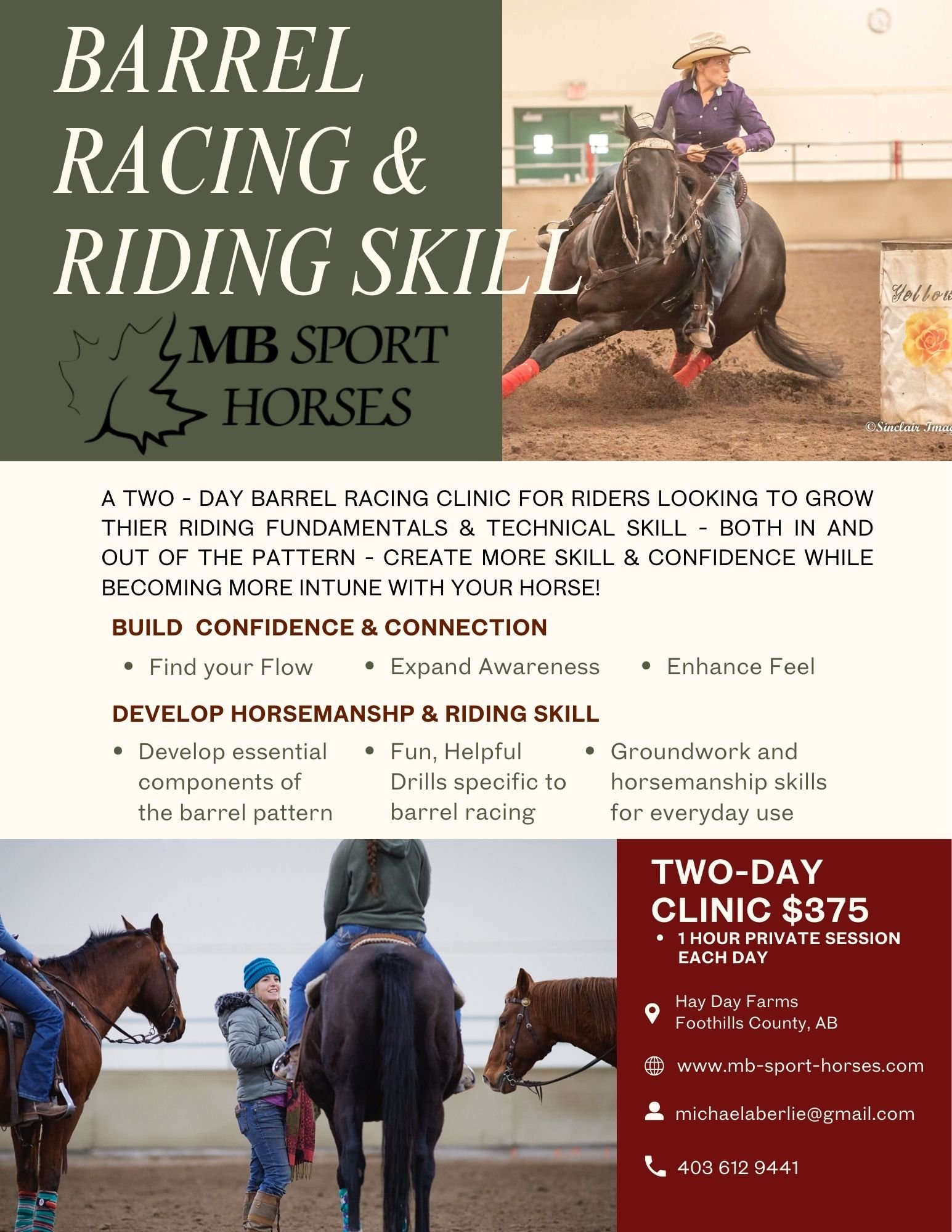 We offer clinics throughout the year at our private facility in foothills county and other arenas in the area. Take a look below for upcoming clinics!